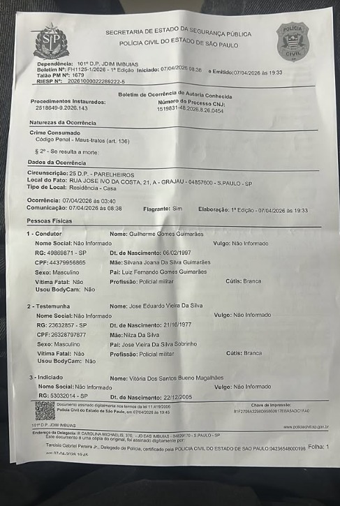 O caso foi formalmente registrado pelas autoridades, com base em informações coletadas por profissionais de saúde e pela polícia, e segue sob investigação para esclarecimento completo dos fatos e responsabilização dos envolvidos.